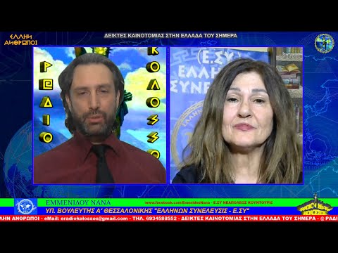 ΣΤΗΝ ΕΚΠΟΜΠΗ ΤΟΥ ΝΙΚΟΥ ΑΡΓΥΡΟΥ "ΕΛΛΗΝ ΑΝΘΡΩΠΟΙ" ΚΑΛΕΣΜΕΝΗ Η ΥΠ. ΒΟΥΛΕΥΤΗΣ Α' ΘΕΣΣΑΛΟΝΙΚΗΣ ΜΕ ΤΗΝ ΕΛΛΗΝΩΝ ΣΥΝΕΛΕΥΣΙΣ ΝΑΝΑ ΕΜΜΕΝΙΔΟΥ. ΘΕΜΑ ΣΥΖΗΤΗΣΗΣ ΟΙ ΔΕΙΚΤΕΣ ΚΑΙΝΟΤΟΜΙΑΣ ΣΤΗΝ ΕΛΛΑΔΑ ΤΟΥ ΣΗΜΕΡΑ. ΣΤΟΙΧΕΙΑ ΕΠΙΚΟΙΝΩΝΙΑΣ: Ε.ΣΥ ΝΕΑΠΟΛΕΩΣ ΚΟΥΝΤΟΥΡΙΩΤΟΥ 4 ΝΕΑΠΟΛΗ ΤΗΛ: 6944964711 Email: nanaemenidou@gmail.com Facebook: https://www.facebook.com/EmenidouNana ΡΑΔΙΟ tv ΚΟΛΟΣΣΟΣ: ΤΗΛ. 6934588552 @radiokolossos eradiokolossos@gmail.com